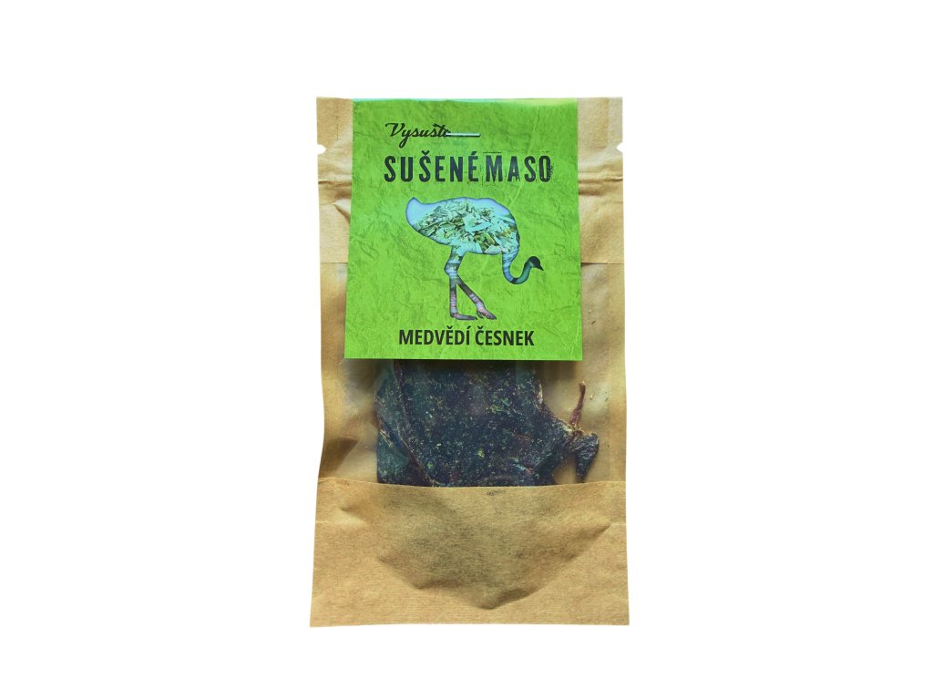 Pštros Medvědí česnek: Křupavá divočina s bylinkovým nádechem Pštrosí maso je luxusní surovina, ale my jsme ho chtěli posunout ještě o kus dál. Spojili jsme ho s nezaměnitelnou vůní a chutí medvědího česneku. Výsledek? Křupavé plátky, které nedáš z ruky. Značka Vysušto se soustředí na strukturu – maso naložíme a sušíme tak dlouho, dokud nezíská texturu, která křupe spíš jako zdravý chips než jako klasické jerky.